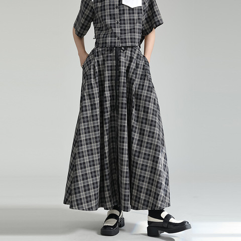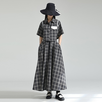 Set estivo a due pezzi Street Retro camicia corta con risvolto donna gonna lunga altalena grande Top a maniche corte gonna a vita alta Set a due pezzi