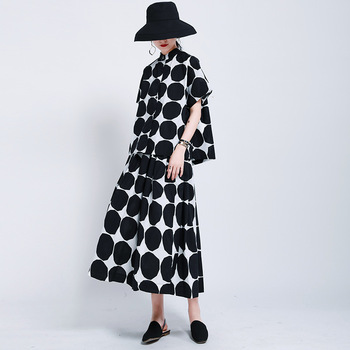 Abiti di moda donna eleganti abiti Casual estivi pieghettati disegno irregolare manica lanterna Plus Size abito camicia 1031