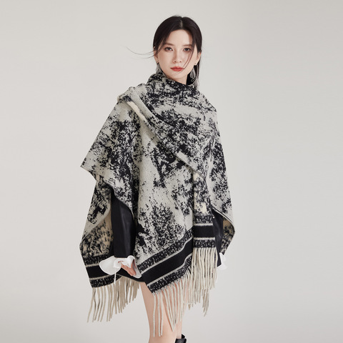 Scialle di mantello Color inchiostro cinese per le donne, nuovo stile cinese leggero di lusso autunno e inverno abbinato a nappe