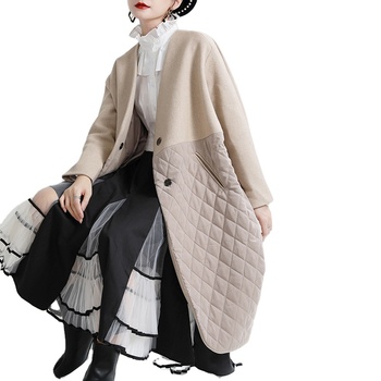 2023 invernale nuovo Design di nicchia elegante semplice Patchwork giacca invernale donna cotone scollo a V ampia lana contro cappotto di cotone di colore