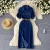 Blu scuro semplice stile Denim Polo abito da donna 2024 estate traspirante sostenibile antistatico con taglio a fessura