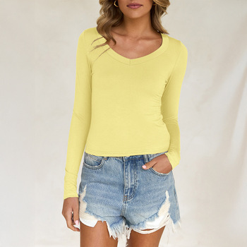 Европейская/Американская Сексуальная и Клубная однотонная дышащая тканая футболка с круглым вырезом и обычным рукавом для осенней женской одежды