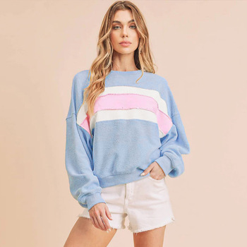 Cộng với kích thước của phụ nữ mùa đông áo cổ tròn dài tay nối sọc màu chặn lỏng phù hợp hàng đầu thường thoáng khí