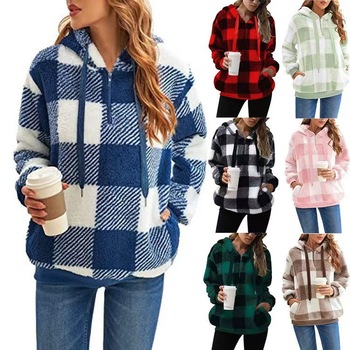 Mùa thu mùa đông cộng với kích thước của phụ nữ Hoodies & áo nỉ giản dị dài tay Trùm đầu kẻ sọc hàng đầu với dây rút túi thoáng khí